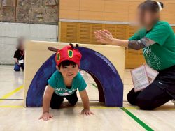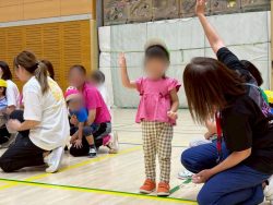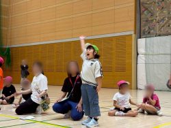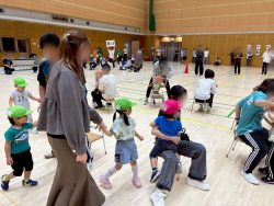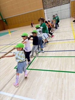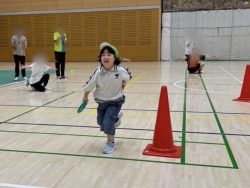 かけっこは、お名前を呼ばれると元気よく返事をして