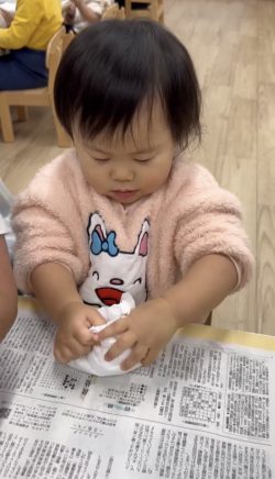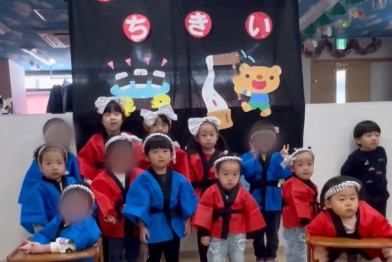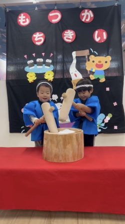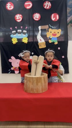 みんなではっぴを着て、もちつきの歌を歌って、手遊びをしました!とてもかわいかったですよ💕